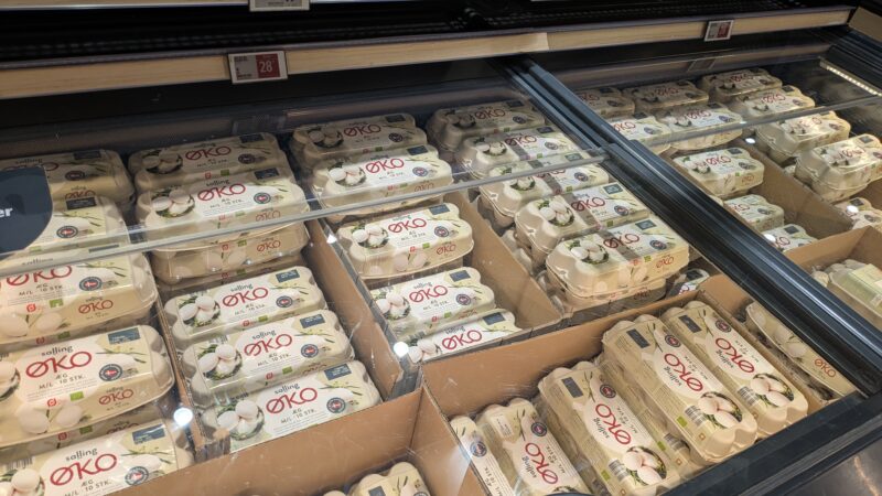 • 卵(Mサイズ 10個):25〜35 DKK(約€3.3〜€4.6)